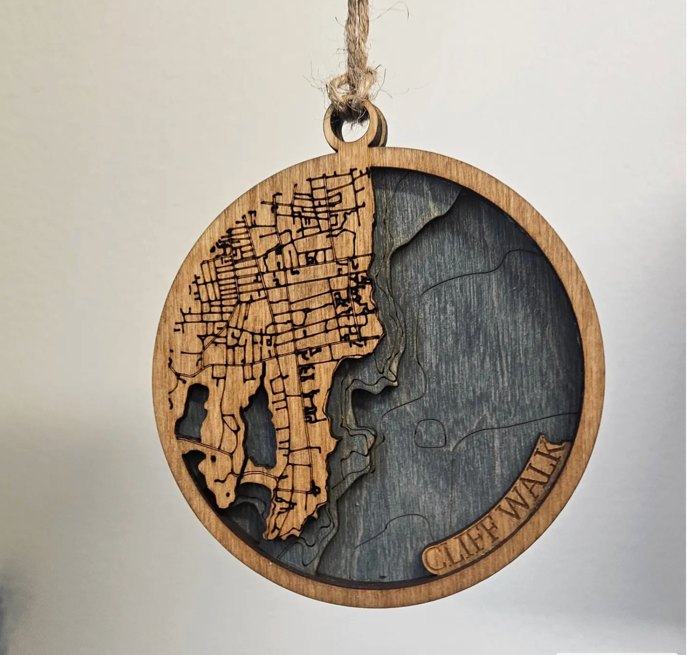 Cliff Walk Newport, Rhode Island 4" Birch 3d Ornament with bathymetric 3d Layers